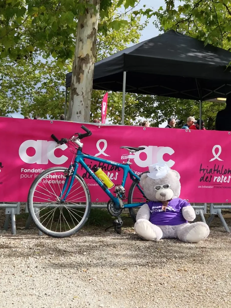 Comme chaque année Octobre Rose s’empare du calendrier pour sensibiliser le plus grand nombre au risque des cancers du sein. Nathalie et notre mascotte Eugène ont souhaité prendre part à l’action en s’inscrivant au Triathlon organisé pour l’occasion.
