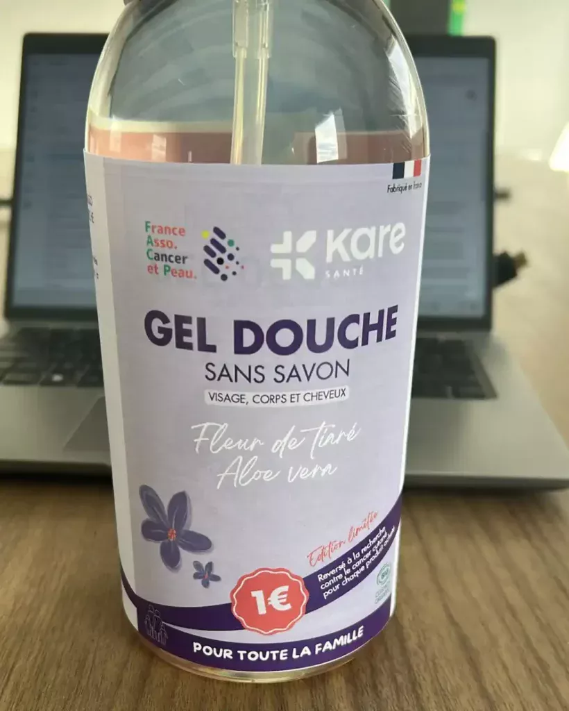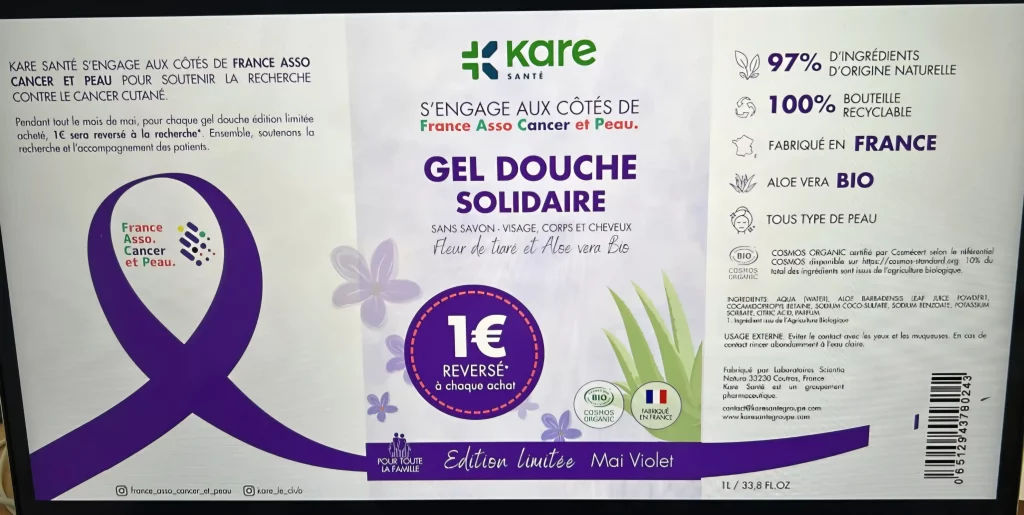 Pour tout achat d’un flacon de gel douche 1€ sera reversé à l’Association.