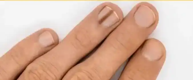 Si le risque U.V a été parfaitement appréhendé, il a aussi été abordé au travers de l’usage des U.V dans l’univers de l’onglerie. Pour rappel les outils UV de séchage doivent être, selon les recommandations, utilisés sur un maximum de 7 fois par année. Au delà l’utilisateur se met en situation de risque et peut potentiellement développer un mélanome de l’ongle reconnaissable par le trait longitudinal situé sous l’ongle. (Cf. Photo)