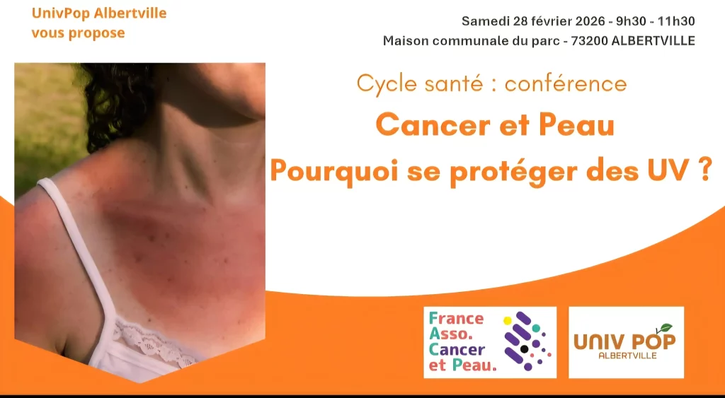 UNIV POP Albertville Conférence Cancer et Peau pourquoi se protéger des UV ? – France Asso Cancer et Peau avec l’université Populaire de Savoie, L’Assemblée Générale de mi-Saison des moniteurs de ski de Courchevel et pour finir le Salon de la Santé et du Bien être à Ugine.